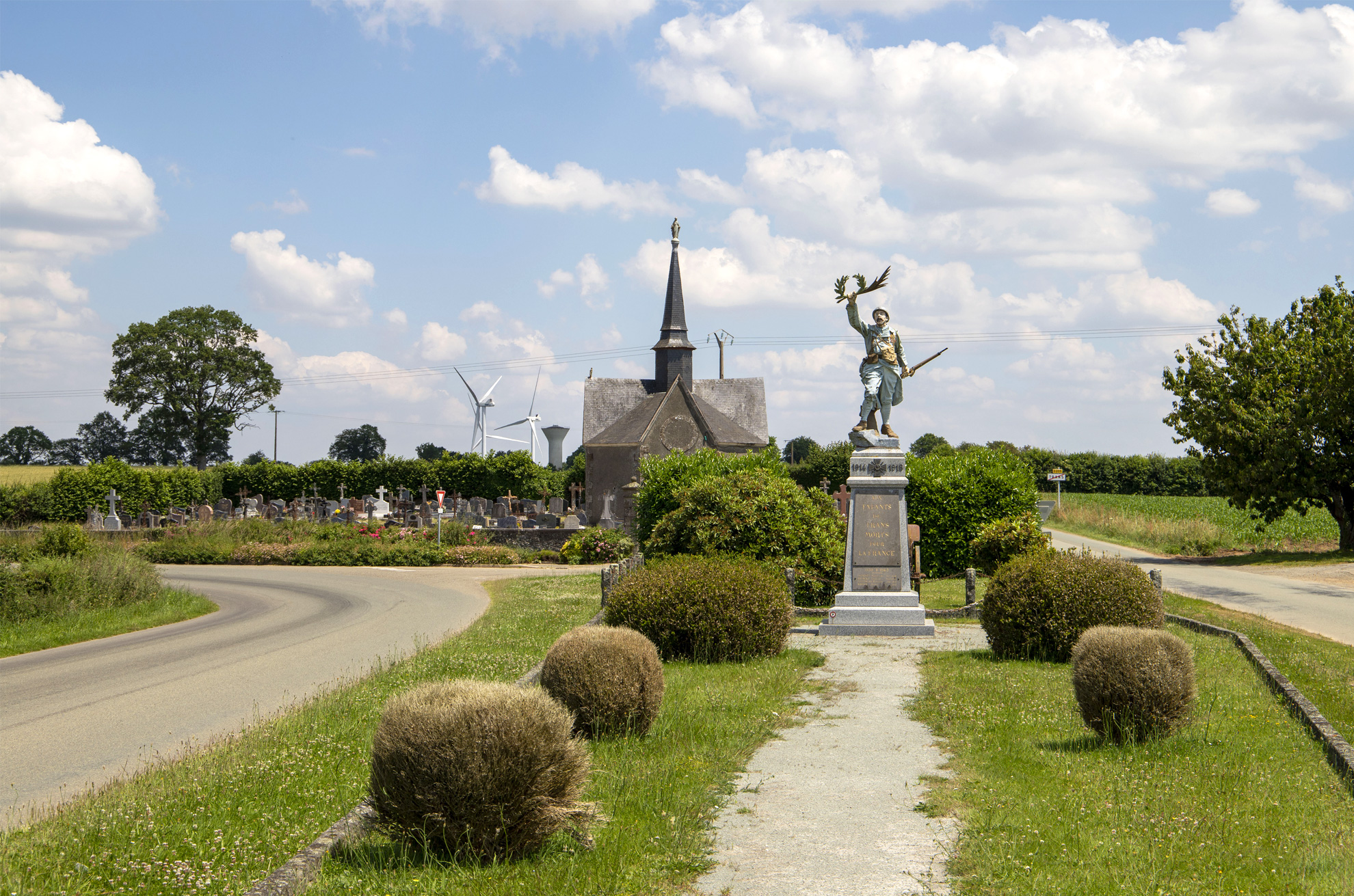 Nichée à l’écart du bourg, en bordure d’un chemin, cette petite chapelle offre un lieu de recueillement discret dans un environnement naturel. Son architecture modeste témoigne de la piété populaire locale. - Monument aux morts